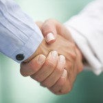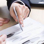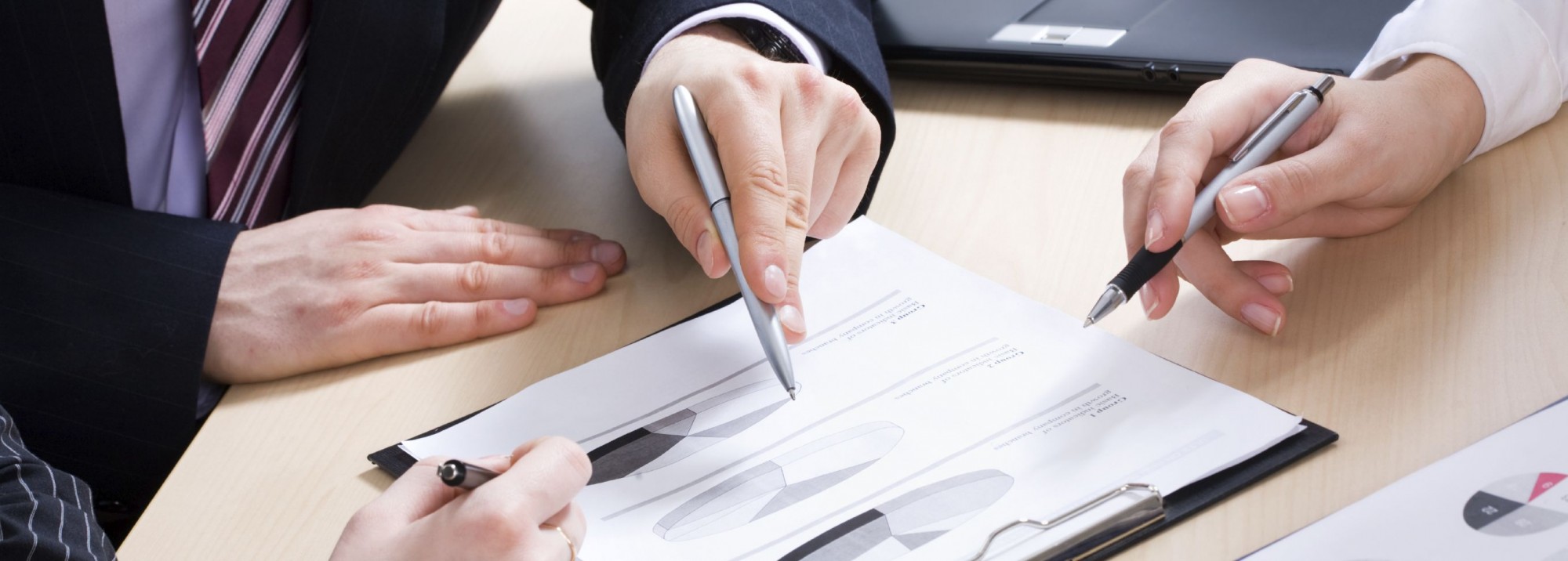 Close-up of business partners hands over papers discussing them